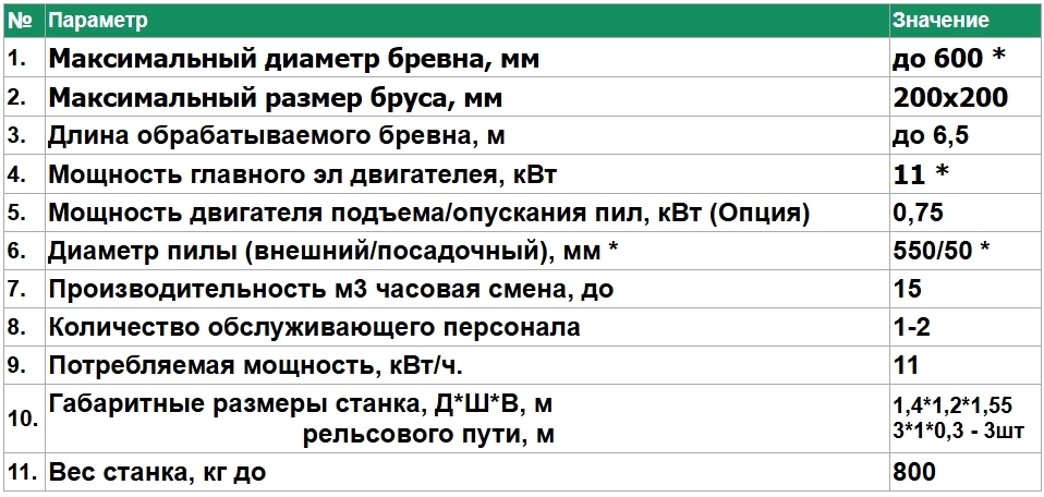 | 1. | Максимальный диаметр бревна, мм | до 600 * |